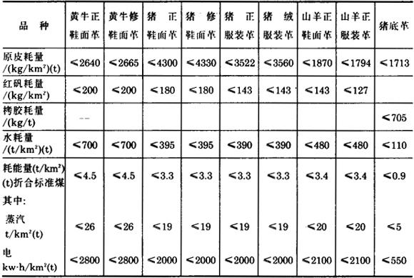 | 字词 | 制革生产中物质消耗定额 |