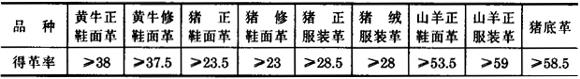 注:表列牛、羊皮为淡干皮,猪皮为盐湿皮,其它板别的皮可按8-1之注1.所列折算系数折算。