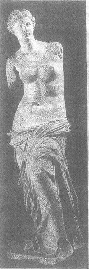 米罗斯的阿芙罗蒂德(维纳斯) 这件雕像为两块大理石合并雕成,高2.04米。在基座上刻有铭文“美安德罗斯河畔安蒂奥克伊亚的亚历山德罗斯作此”。有的鉴定家根据造像风格和铭文内容断定为公元前2世纪希腊化时期作品。 1821年当这尊雕像和公众见面时,整个巴黎都沸腾了,有的人竟情不自禁地流下了热泪。著名作家夏多勃里昂赞不绝口地说: “她具有无比的美,神化了的美,看那纯洁的裸体与女神一般的优柔、典雅、壮丽,具有希腊风格的本质……她并不以其肉体为骄傲,她永远是属于哲学的,属于柏拉图式理想的,她能使人做着无限的梦。” 这位失去了双臂的美神、爱神,一副可爱的椭圆形脸庞、平平的额头、直直的鼻梁、凝神的眸子、含情的嘴角,是那样典雅端庄,静穆伟大,给人以美的享受和情感的慰藉。阿芙罗蒂德下身以长裙围裹,上身全然裸露,头稍稍左倾,躯干偏向右侧,左腿自然微屈。这含蓄的微妙的呈S形的动势富有音乐般的旋律美。上身和下肢,着衣与裸体形成藏与露、粗与细、简与繁、动与静的微妙的对比,使人体味到青春、健美和生命的力量,感受到希腊艺术灵与肉、情与理和谐统一的伟大精神。这就是阿芙罗蒂德给我们的启迪。 ☚ 雅典娜与巨人之战 母狼 ☛ |