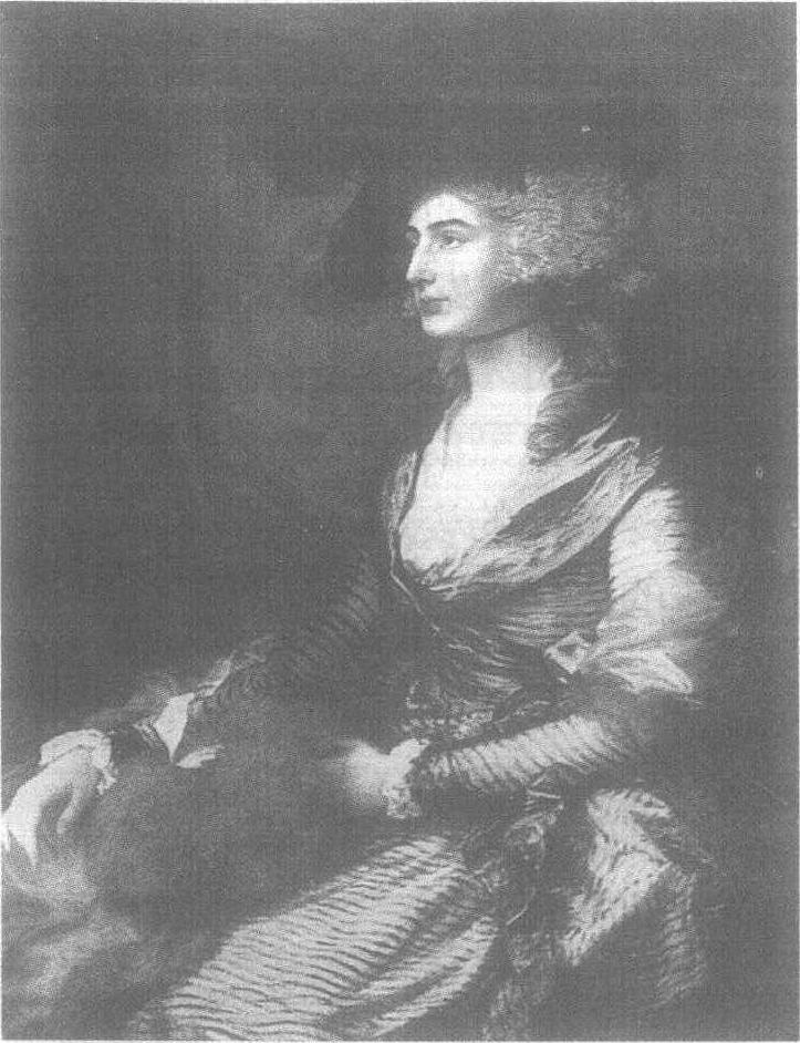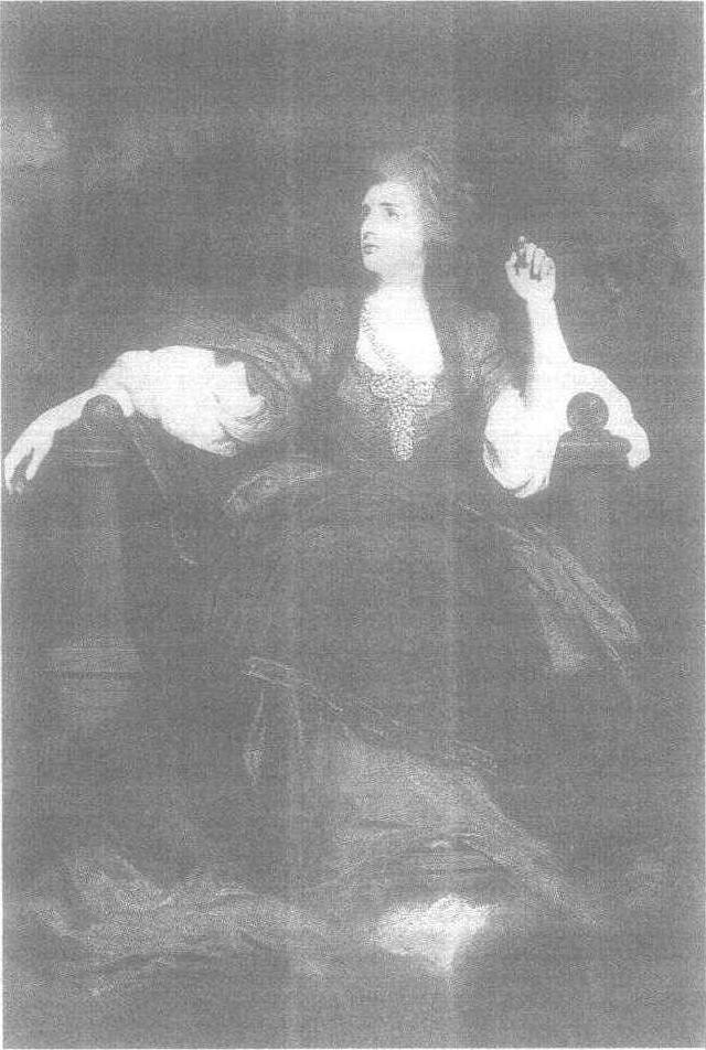 扮作悲剧女神的西登斯夫人 雷诺兹 然而舞台上的西登斯夫人与生活中的西登斯夫人却判若两人。庚斯博罗同样为这位女演员画过 一幅肖像。他好象在被画者身着家常便服时捕捉住了她,画下的是一个端然而坐的时髦的贵妇人的风韵,也没有去掩饰她长而尖的鼻子。而雷诺兹的那幅由于表情更为丰富,看去舞台上的她要比实际的她更美一些。 据西登斯夫人的回忆,她为了这幅肖像画曾经拜访了雷诺兹的画室。雷诺兹对她说道: “请坐在‘宝座’上吧,悲剧女神应该是个什么样子呢?能做出个好的构思给我看看吗?不胜感谢!”于是她在椅子上坐下来,当即取了个姿势。雷诺兹很高兴,将其写生下来。一次,怕延误了约定时间急急忙忙赶来的西登斯夫人,气喘吁吁地一屁股坐到椅子上,把 一只手搁在椅子的扶手上,用另一只手去取头上的帽子。突然她扬起脸说道:“看看这个姿势怎么样?” “就这样,就这样。”雷诺兹答道。