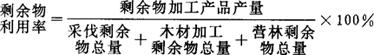 | 释义 | 剩余物利用率 指剩余物加工产品产量占采伐剩余物总量,木材加工剩余物总量和营林剩余物总量之和的比重,用百分数表示。 它是考核林业企业木材综合利用的一个重要指标。其计算公式如下:
