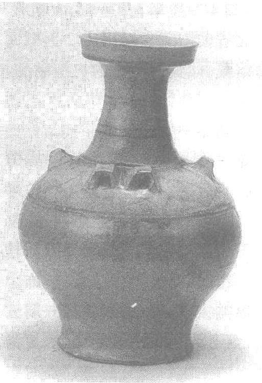 南朝。古代盛器。高36.5厘米,口径13.5厘米。上海博物馆藏。盘口壶是东汉至唐盛行的瓷器品种。这件器物盘口大小适度,壶颈较长。腹不似同时代的壶那样修长,在腹中部达最大腹径后迅速内收,而后外撇,形成弧度很大的曲线。这种壶腹与细长的壶颈相配,显得丰满活泼。壶肩饰桥形系单系双系各一对,并刻有双重莲瓣纹。莲瓣纹是佛教艺术题材之一,在南朝青瓷装饰中被普遍采用。此器通身施青灰釉,积釉处呈草绿色,并开细碎片纹,是一件工艺技术很高的作品。