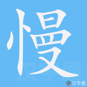 字源解说 曼,既是声旁也是形旁,表示用布带将眼睛矇住。慢,篆文 = (心,态度)+ (曼,矇眼),造字本义:被矇眼的奴隶态度怠惰,动作迟缓。隶书 将篆文的“心” 写成 。 附 文言版《説文解字》:慢,惰也。从心,曼聲。一曰慢,不畏也。 附 白话版《说文解字》:慢,怠惰。字形采用“心”作边旁,采用“曼”作声旁。另一种说法认为,“慢”是态度高傲不妥协。 引申线索