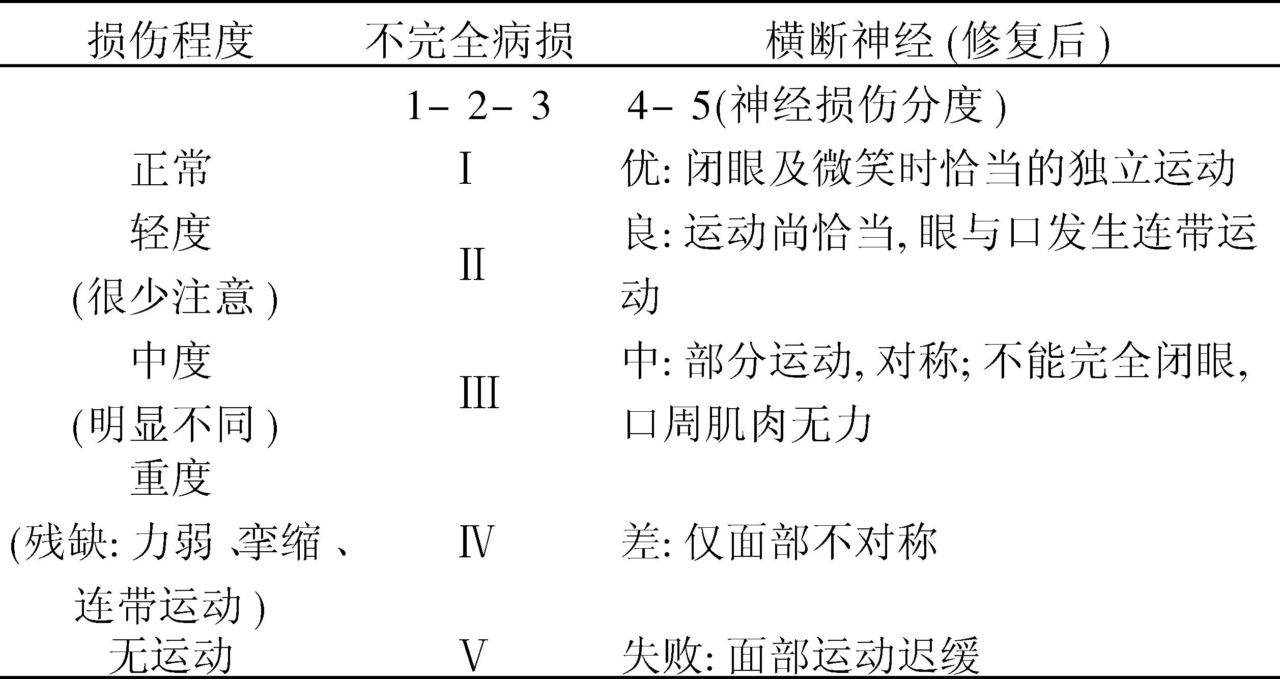 | 字词 | 面神经功能评价分级系统 |