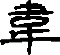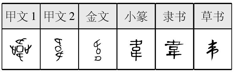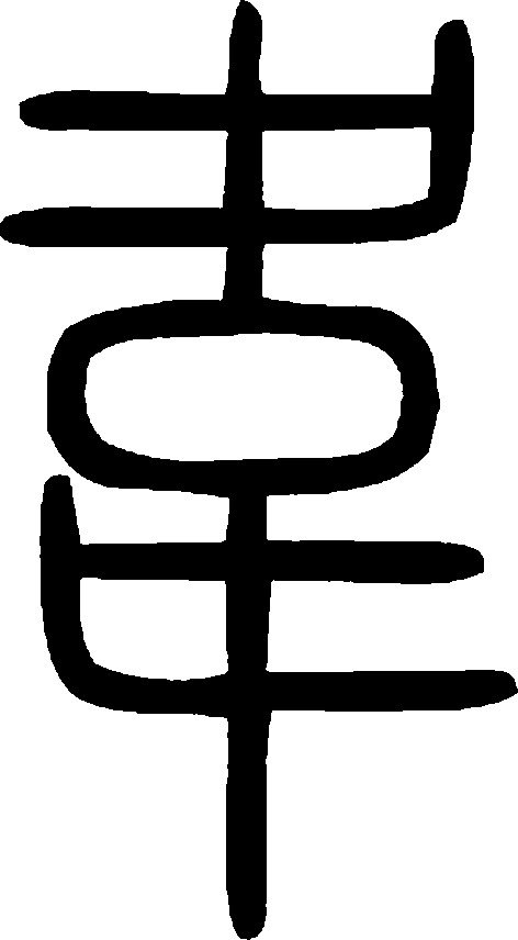 wéi表意,甲骨文、金文、小篆中间象城邑形,四周或上下象足迹,表示环绕着城邑巡逻,隶定为“韋”。本义为保卫,是“衛(卫)”的本字。一说本义为守城,是“圍(围)”的本字。假借为违背、背离,后作“違”。又假借为熟皮(去了毛经过熟制的皮子),由此引申为皮绳。又假借为姓。近代俗字、《简化字表》简作“韦”,据草书楷化。 【辨析】 ❶以“韦”作音符构成的形声字一般读wei,但声调和声母不同。wéi:违、围、帏、闱∣wěi:伟、纬、苇、玮、炜、韪∣huì:讳。 ❷“韦(韋)”可作类推简化偏旁使用,如:伟(偉)、违(違)、苇(葦)。 ❸韦/违/回 “韦”有违背义,后多作“违”,“回”有违背正道义,这三个字读音相同或相近,是同源字。 ❹韦/革/皮/肤 见309页“皮”。韦 韋; 甲 金 篆 隶wéi【析形】会意字。甲骨文、金文字形从囗,从二止(趾),囗表示区域,二趾表示将其围住。小篆字形中止形整齐化。 【释义】本义是围。这个意义后来写作“围”。古书中“韦”多表示去毛熟治的兽皮、柔软的皮革。又可表示皮绳。[韦编三绝]谓读书勤奋、刻苦治学。 【shape analysis】It is the associative character.In Oracle and Bronze Inscriptions it is formed with 口(kǒu,mouth,means the feild) and double 止(zhǐ,toe), meaning gathering with double toes. 【original meaning】韦 in ancient books always referred to the animal fur without hair or soft leather. |