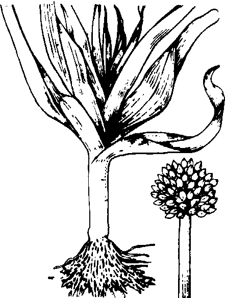 韭 葱 韭葱leekAllium porrum L.,又称扁葱、扁叶葱、洋大蒜。百合科,葱属。二年生草本。2n=4x=32。原产欧洲中南部。中国有零星栽培。弦状根。茎短缩呈鳞茎盘。单叶互生,圆状叶鞘套生成假茎。叶片长披针形,有蜡粉。伞形花序。种子有棱、黑色。抗寒、耐热,能耐38℃高温和-10℃低温。春季育苗,夏季定植,初冬收获。华北、华中、华南还可春末夏初播种,当年收嫩苗,翌春收假茎,初夏收薹。根系吸肥力弱,宜选有机质丰富、疏松土壤栽培。嫩苗、假茎、鳞茎及花薹均可食用,宜炒食、作汤或调料。