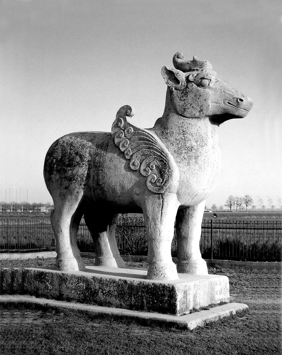 | 释义 | 顺陵天禄 顺陵天禄shunling tianlu唐代。武周天授元年(690)前后刻。位于咸阳市渭城区底张镇陈家村南,现立外城神道两侧。1对。高415厘米,长420厘米,宽190厘米。天禄为瑞兽。其形似鹿,一名“天鹿”。又因头长一角,俗称“独角兽”,石刻天禄昂首端立,肩部和前腿两侧相结处有双翅,刻卷纹,长尾拖地。《汉书·司马相如传》称此兽为獬豸。唐陵多有此类石刻,而顺陵所刻形体最大。杨氏死于唐高宗咸亨元年(670),初赠晋国夫人,葬以王礼。武后即皇帝位后,于光宅元年(684)追封其母为魏王妃。永昌元年(689),又追尊其母为忠孝太后,改墓名为明义陵(或称顺义陵),天授元年(690)再追封其母为孝明高皇后,改明义陵为顺陵。