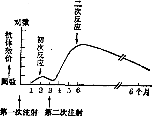 初次反应与二次反应比较示意图二次反应较初次反应高10~50倍 二次免疫反应,可在初次接种后短时间内,再进行第二次接种使之出现。为了取得最好的免疫效果,第一次与第二次接种的间隔,至少需10天左右,以使机体有产生大量抗体的时间。免疫反应包括对机体有利和不利的反应,在预防接种时,对二者皆需考虑到。 生物制品的种类 按产生免疫的性质不同分为: 自动免疫制剂 ❶菌苗: 用细菌菌体制成,包括死菌苗(如霍乱、百日咳等)与活菌苗 (如卡介苗,鼠疫菌苗等); ❷疫苗:用病毒或立克次体接种于动物、鸡胚或组织中培养,经处理后制成,包括灭活疫苗(如乙型脑炎疫苗)与减毒活疫苗(如脊髓灰质炎疫苗、麻疹疫苗等); ❸类毒素:用细菌所产生的外毒素加入甲醛,使变为无毒性而仍有免疫性的制剂,如破伤风、白喉类毒素等。 被动免疫制剂 包括抗毒、抗菌、抗病毒血清,总称为免疫血清。此类制剂中含有大量抗体,注入人体后,人体很快就获得免疫力,主要用于治疗。目前广泛使用的是抗毒素制品(丙种球蛋白亦属此类制剂)。本类制品为动物血清,对人体是一种异性蛋白,注射后易产生过敏反应,特别是重复使用时,更应慎重。 按制作方法及物理性状不同分为: 精制品 经除去原制品的无效成分,浓缩提纯而成。本品纯度高,用量小,过敏反应少。 干燥制品 使液体制品在低温下迅速冻结,然后干燥而成。本品效能稳定,有效期长,不怕冻,较耐热,便于保存和运输。 多联多价制品 几种制品按适当比例混合而成,如百白破联合制品,美国使用的麻疹、腮腺炎、风疹三联制品等。注射此类制品,可同时预防几种疾病,减少注射次数。 吸附制剂 在制品中加入磷酸铝或氢氧化铝等吸附剂而成。如吸附精制破伤风类毒素、白喉类毒素等。此类制剂吸收慢,刺激时间长,故可提高免疫效果,减少注射次数和剂量。 生物制品的保存及运输 生物制品应由专人保管,每日检查保存制品的冰箱或冷藏器的温度,定期检查制品的有效期,使用情况及有无变质。除脊髓灰质炎活疫苗糖丸及干燥制品不怕冻外,其它制品不能在0℃以下保存,否则会冻结,发生大量溶菌或出现不能摇散的沉淀而影响免疫效果,或加重接种后的反应。最适宜的保存条件为2~10℃于暗处。活疫苗和活菌苗最怕热,如麻疹疫苗及卡介苗在室温下放置,则效力明显下降。故接种时应尽量集中在短时间内进行,以减少制品在室温下停留的时间。运输各种生物制品,应掌握各种制品的保存条件,必要时置于冷藏器内运输。 计划接种 儿童在出生后,自母体带来的抗体逐渐消失,对各种传染病皆易感染,即使是接受过预防接种的儿童,抗体水平也会逐渐下降,需要重复和加强注射。为了使易感人群获得牢固的免疫力,应开展计划接种,科学地安排接种对象与时间(见附表)。对接种对象及接种项目要做到准确、及时、不漏、不重复并建立预防接种卡片,以全面掌握管段内儿童免疫情况。几种制品的接种间隔时间: 百白破三联制品 一般每针间隔4周,第一、二针间隔时间不得超过2个月;第二、三针间隔时间不得超过3个月。次年加强针与基础免疫第三针应间隔11~18个月。 麻疹活疫苗 第二年复种应不超过2岁半,初种与复种的间隔为10~16个月。7岁时再复种一次。 脊髓灰质炎活疫苗糖丸 未满4岁儿童需完成两次复服,两次间隔10~14个月(按Ⅰ型时间计算)。 儿童计划接种程序参考