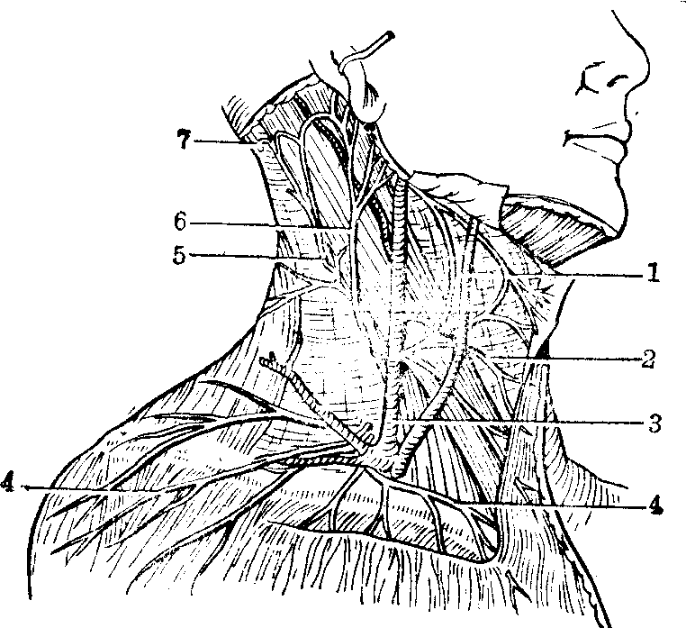 颈丛的分支 颈襻,位于颈动脉鞘浅面,由颈襻的上根和下根在环状软骨附近汇合而成。上根的纤维来自第1颈神经,它先加入舌下神经,行走一段以后,其大部分纤维即自舌下神经分出,组成颈襻的上根(旧称舌下神经降支); 下根为C2~3部分纤维所组成的降支。上、下根合成颈襻后,由襻发支支配舌骨下肌群。第1颈神经加入舌下神经的纤维的另一小部分纤维继续在舌下神经行走一段,然后分出支配甲状舌骨肌和颏舌骨肌。 ☚ 脊神经的节段性分布 膈神经 ☛ |