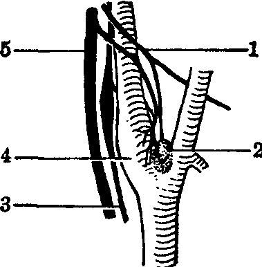 1.舌咽神经 2. 颈动脉小球 3. 交感神经 4.颈动脉窦 5.迷走神经