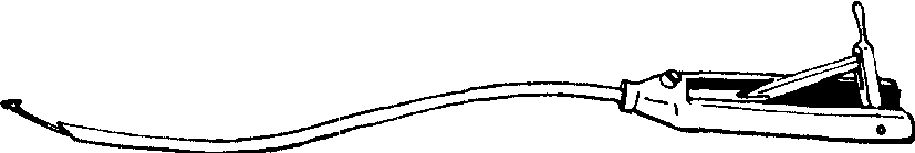 图2 面神经搭桥术 周围性麻痹的后期治疗,目的在于设法纠正畸形和改善功能,用于经早期治疗后,长时间随诊观察,恢复不满意,或确认恢复无望的病例。后期整形手术有静力支持和动力支持两类方法。畸形程度严重者,尚需配合辅助性手术以增强疗效。 静力支持法,利用植入皮下的强韧筋膜条,牵紧瘫痪部位,以达到颜面两侧在静止状态下的平衡对称,使畸形得到改善,但无自主表情活动。此型手术简便易行,效果也较可靠,故一般较常采用,名为筋膜条悬吊术。操作方法,先用筋膜抽取器取自体阔筋膜条四条备用(见“筋膜移植”)。分别在麻痹侧的颞部、内外眦部、鼻唇沟和上下口唇中央稍偏健侧等部位作皮肤切口。用筋膜针(图3)经各切口作由颞部经外眦、下睑至内眦部,和由颞部经面颊至口角的皮下深层隧道,并作围绕患侧口唇超过口裂半周在口轮匝肌内的隧道。在每一隧道穿通后随即用筋膜针将一条筋膜植入隧道,口唇部的一条呈“8”字状植入口轮匝肌内,两端互相缝合。面颊部的两条筋膜自颞部从不同的面颊 经路植入,下端分别与口唇部的 “8” 字韧带相接缝合,上端在拉紧筋膜条的情况下与颞筋膜编织或穿过在颧弓上所钻骨孔缝合固定。另一条筋膜穿经下睑皮下隧道,一端与颞筋膜,另一端与内眦韧带或鼻骨骨膜,在将筋膜条牵紧的状态下缝合固定(图4)。为弥补日后筋膜条固定点的松弛,须作过度矫正。