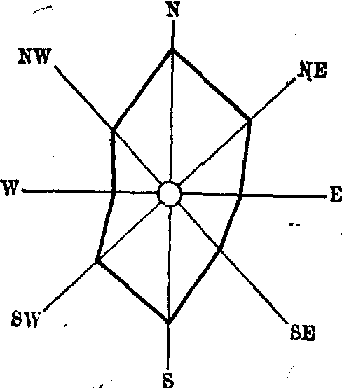 | 释义 | 风玫瑰图wind rose在极坐标底图上绘出某一地点在某一时段内各种风向出现频率或各种风向的平均风速的统计图。因图形似玫瑰花朵而得名,前者称“风向玫瑰图”,后者称“风速玫瑰图”。绘制风向玫瑰图的方法:在8个或16个方位上,按一定的比例标出各个方位上风的频率,连结各点成一封闭折线。频率最大的方位,表示该风向出现次数最多。用类似的方法也可点绘出各个方位的风速,得出风速玫瑰图。图中从中心至各方位的射线长度,可用以表示风向频率,也可用以表示该方位的平均风速。
