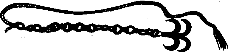 ☚ 飞枪 飞 ☛ 飞钩 飞钩古代稀有兵器的一种。纯铁制成,形状象鸱鸮的脚,故又叫铁鸱脚。钩锋长利,四刃曲贯铁索,用长麻绳系缚铁索的端环。此种兵器具有钩、掬、带、搂、取等作用。掷钩于稠人之中,每钩可取二人。图为明代制造的飞钩(图71)。