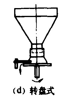图1 容积式计量器 螺旋式计量器 由料槽和装在槽内的排料螺旋构成。槽的一端为进料口,另一端为出料口,槽内饲料的排出量与螺旋的旋转角度成一定的比例关系。工作时,驱动链轮每转1转,螺旋旋转一定的角度,从而排出所要求的饲料数量。在螺旋轴的驱动器上装有带刻度盘的调位手轮和一套棘轮调节机构,以便控制螺旋的转角。 拨轮式计量器 由方形料斗和装在斗内的带槽拨轮构成。工作时,拨轮定时旋转一定角度,将料斗内饲料排出,其排出量与拨轮的转角成正比。拨轮转角的调节机构与螺旋式计量器类似。 输送带式计量器 由方形料斗和装在料斗底部的一根传送带构成。工作时,传送带将料斗中的饲料排出。控制料斗侧壁上插门的开启大小,就可得到不同的排料量。 斜盘式计量器 在料斗出料口上有一高度可调节的套管,套管下方有一个旋转圆盘,圆盘上有一块固定不动的刮料板。工作时,旋转的圆盘将从料斗出料口流下的粉料带出,当盘上的粉料遇到刮料板时,即被刮下,从排料口排出。调节圆盘的转速、套管的高度或刮料板的位置就可得到不同的排料量。 重量式计量器 按照饲料的重量进行计量的装置。它由料斗、称量器和卸料门等组成。常见的类型有秤车式、字盘定值式和电子式。此外还有专用于预混合饲料的微量元素配料秤。重量式计量器的计量精度高(约为0.1~1%),但除了秤车式外其他结构都较复杂。一般用于大、中、小型饲料加工厂。 秤车式重量计量器 是装在小车或吊车上的杠杆式秤,秤台上装有料斗。工作时,工人将小车依次推到装有不同品种饲料的各配料仓下,按计量要求预置好砝码,启动给料器,使饲料落入车斗中,当达到预定的重量而秤杆抬起时,关闭给料器。这种计量器由人工操作并要求操作人员工作精心。 字盘定值式计量器 又称字盘定值配料秤,是一种机电结合的计量装置。预先调定后可自动连续计量4~12种配料。它由料斗、杠杆系统、计量表头和控制台等组成(图2),并和相应数量的配料仓和螺旋给料器配合使用。当螺旋给料器将饲料加入料斗,料斗的重量将作用于杠杆系统而使计量表头内的指针转动。计量表头上有环状滑道和12个电感头,电感头可在滑道内滑动。工作前应调定各电感头,即根据1号料的分量将1号电感头对准表盘上的相应称量刻度线,然后将2号电感头对准表盘上某一刻度线,使此刻度线与1号电感头所对的刻度线指示值之差就等于2号料的分量,依此类推。工作时,在1号料加入料斗的过程中,表头内的指针从零位置转向1号电感头,当指针转到与1号电感头指示值相差2~3千克时,1号电感头发出第一个信号,使螺旋加料器由快加料(连续运转)变成慢加料(断续运转);当指针转到与1号电感头重合时,1号电感头发出第二个信号,使1号给料器停止给料并使2号给料器开始快加料。依此类推,到最后1号料配完后料斗底门自动打开卸料,卸完后料斗底门关闭,开始下一批称量。当配料种类数少于12时,可将某几个电感头关闭。国产PG2字盘定值配料秤的最大称量值有100~2000千克的六种规格,最小称量应为各最大称量的1/10,配料种类4~12种。计量精度:最大称量时为0.2%,最小称量时为0.5%。