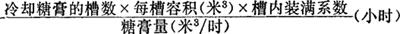 对于间断助晶机,助晶时间指糖膏放入槽后到停止冷却降温时为止的全部冷却时间(提温和等待分蜜时间在外)。对于连续助晶机,助晶时间也是全部冷却时间(提温在外),即: