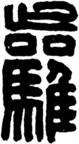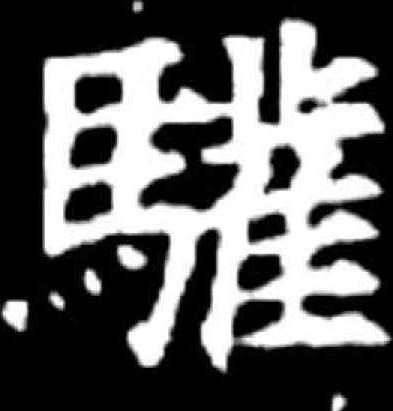 馬之一種。秦印文字和漢印文字中偶見馬居一角之結構。又作州名,秦屬於象郡,隋朝改爲驩州。實物文字中常讀作“歡”。