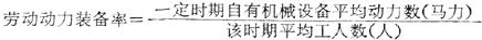 根据研究目的不同,可以按全部工人来计算,也可以按建筑安装工人或全部职工来计算。 劳动动力装备率愈大,说明工人所分摊的机械动力数愈多,由机械所装备的程度就愈高。 |