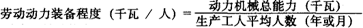 平均每一生产工人在生产过程中能利用的动力机械能力数量。