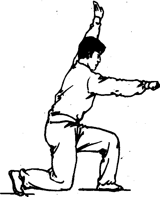 南拳步型。也称挎虎步。两腿错步开立,距离约两脚长。前腿屈膝下蹲,脚尖微内扣;后腿跪下接近地面,但不得贴地,小腿接近水平。