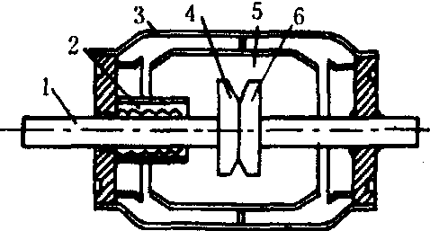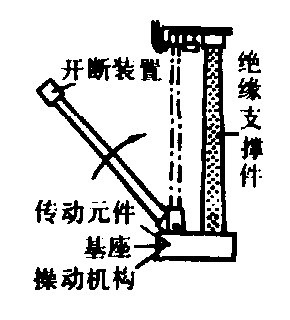 图7 真空灭弧室结构原理 1.动触杆;2.波纹管;3.外壳;4.动触头;5.屏蔽罩;6.静触头 断路器 具有开断和关合负荷电流及短路电流能力的高压开关电器,是电力系统中重要的电气设备。根据灭弧介质不同分为:❶油断路器。利用矿物油作为灭弧介质的油吹高压断路器,分为少油式和多油式两种。少油式断路器中的油仅作为灭弧介质和分断后触头间的绝缘介质。多油式断路器中的油,除上述作用外,还作为带电部分之间及其对地的绝缘。少油式断路器用油量少、体积小、重量轻、完全可靠,但不适用于寒冷地带。35千伏及以下电压级多采用户内(N)少油(S)式,110伏及以上电压级多采用户外(W)少油(S)式。多油式断路器多用于户外,用油量多,笨重而动作可靠,配套性强(带有电流互感器),受气候条件影响较小,应用于中压系统。 ❷六氟化硫断路器。采用六氟化硫气体作为灭弧介质的气吹高压断路器,分为户内式或户外式。户外式一般采用单压式灭弧装置,又分为瓷柱式和罐式两类。瓷柱式的灭弧室处于高电位放在瓷套管中,罐式的灭弧室置于接地的金属罐内,重心低、抗地震性好,易于加装电流互感器,还可与隔离开关、接地开关等组成复合式开关设备。户内式一般采用旋弧式灭弧装置,适于组装在开关柜内,广泛使用于中压系统。 ❸真空断路器。由多个单元真空灭弧室组成电压更高的断路器。真空断路器开距小,燃弧时间短,系列性好,结构简单,重量轻、体积小,操作功率小,使用安全,维护简便;但在使用中截流过电压是一个最突出的问题,切除感性负荷时应根据回路条件采取保护措施。在运行中灭弧室的真空度检测仍是难题。 ❹压缩空气断路器。利用压缩空气吹动灭弧的高压断路器,其开断性能和绝缘性能较好,但结构复杂,需要庞大的压缩空气系统,维护工作量大,目前仅在超高压,大容量系统还有应用。 ❺固体产气断路器。用灭弧室内壁的固体产气材料在电弧作用下产生气体吹动而熄灭电弧的断路器。常用产气材料有聚氯乙烯硬塑料、有机玻璃、三聚氰胺甲醛树脂等。但其灭弧能力低,动作噪音大,运行中应注意防水。适用于农村电力网。 负荷开关 主要用于开断和关合负荷电流的高压开关电器。分为通用型和专用型两种,35千伏及以下的通用型负荷开关具有以下开断和关合能力:❶开断数值不超过额定的有功负荷电流和闭环电流; ❷开断不大于10安的电容电流或限定长度的架空线路充电电流; ❸1250千伏安配电变压器的空载电流; ❹关合额定的“短路关合电流”。专用型负荷开关用于开断电流超过上述限额的电路或开断电流超过其额定电流80%的电容器组。按灭弧装置不同,负荷开关可分为压气式、油浸式、固体产气式、真空式、压缩空气式和六氟化硫式等几类。各类负荷开关的结构与同类断路器类似,而开断电流能力比断路器低,结构较简单。 负荷开关主要用于:❶配电线路分段自动控制; ❷某些电器设备投切自动控制; ❸与高压熔断器配合代替断路器作为配电线路的短路保护; ❹带有热脱扣器的负荷开关可用作电气设备的过载保护。 隔离开关 灭弧能力很小,在分闸状态下造成明显(直接或间接)可见断口间隙的开关电器,俗称刀闸。其种类有:户内式、户外式,输配电用,发电机引出线用,变压器中性点接地用和快分用等多种。户内式隔离开关额定电压一般不超过20千伏,多采用三相共座式结构和三相联动操作方式。触头运动方式有水平回转式和垂直回转式两类。220千伏及以下常用户外隔离开关,采用三相联动操作或单相操作,除上述的触头运动方式外,还有伸缩式和直线移动式。绝缘支柱有单柱式、双柱式和三柱式等三类。户外隔离开关分合时应有自消除触头表面污垢及氧化膜功能和克服风力及其他外力影响的自调节能力。为防止切断小电流时烧伤接触面,还需设置引弧棒或灭弧角,在重冰雪地区还应有破冰机构。 隔离开关没有专门的灭弧机构,仅利用开断时迅速拉长电弧增加电弧电压降的方法熄灭小电流的电弧,隔离开关开断的小电流参考值如表2所示。隔离开关主要用于:❶设备或线路检修与分段时进行电气安全隔离; ❷在断口两端等电位条件下倒换母线改变接线方式(倒闸操作); ❸分合一定长度线路、电缆等小电容电流; ❹分合一定容量的空载变压器及电压互感器的小励磁电流。 表2 隔离开关开断小电流参考值