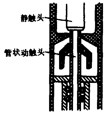 连操动机构 图6 单压式(压气式)灭弧室原理 真空灭弧室 利用高真空灭弧的装置(图7)。所有的灭弧零部件都密封在具有高真空度的绝缘材料(玻璃或陶瓷)制成的外壳内。真空中放电电弧是由电极斑点蒸发的金属蒸气形成。在弧柱内外,压力、质点密度差别极大。当电弧电流趋向零点时,输入电弧能量减少,电极斑点数目及金属蒸发减少,弧柱内质点密度降低。电流经过零点时电极斑点消失,电弧熄灭。之后弧隙质点迅速扩散,真空内的金属蒸气在外壳或屏蔽罩上冷凝,真空的电气强度以20千伏/微秒的速度恢复,经几微秒电气强度即可恢复到冷态的一半,电弧不能重燃。开关出厂时,灭弧室应保持压力小于9.8×10-6帕,运行时压力应小于9.8×10-4帕。