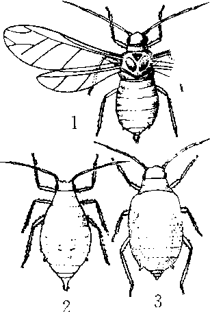 高粱蚜 1.有翅胎生雌蚜 2. 无翅胎生雌蚜 3.有翅若虫 |