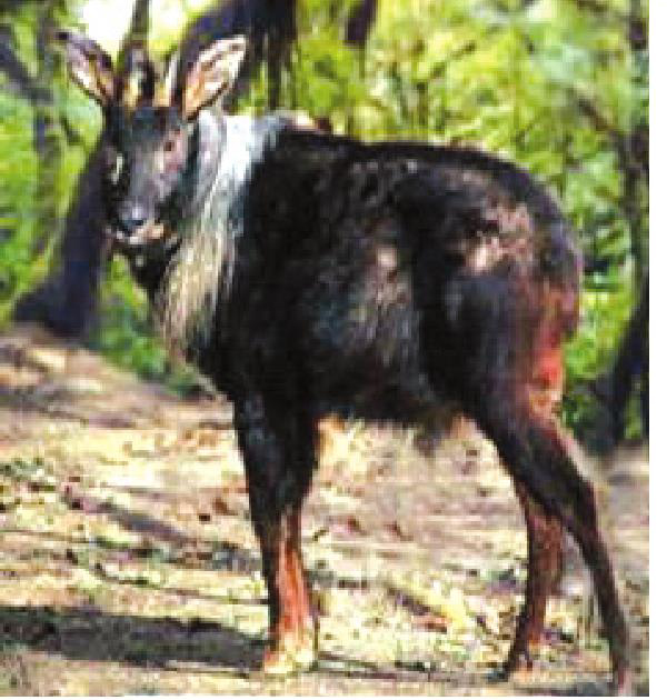 鬣羚 ☚ 林麝 金猫 ☛ 鬣羚 鬣羚别名明鬃羊、苏门羚。哺乳纲偶蹄目牛科鬣羚属。栖于海拔1 000~4 000米的针叶林和针阔混交林或多岩石的杂灌丛地带。常在陡峭和乱石山岩间窜跳奔跑。行动迅速,一般喜独栖生活,也偶有3~5只结成小群的。食物多以植物嫩枝、芽、叶和苔草、小叶女贞等为主。产于天水、陇南、甘南、临夏等地(州、市)的各县。皮可制革,骨可入药。可供科学研究和动物园展览。国家二级保护野生动物。 ☚ 扭角羚 斑羚 ☛ 鬣羚 鬣羚国内分布于四川、甘肃省和长江以南地区。是一种中型的牛科动物。因最早在印度尼西亚的苏门答腊发现,所以又称苏门羚。体长约1.5米,体重100公斤。栖息于较高的山地林区,常在乱石岩间跳跃,白天在石洞或垂岩下休息,清晨、黄昏外出活动。性孤僻、暴躁、胆怯、机警。主要以树叶为食,也吃果实、菌类和农作物。鬣羚角有清热解毒,平肝熄风之功能,主治痫症、中风、小儿惊风、温热病等;骨有祛风、止痛的功能,主治风湿肢节酸痛、麻木不仁等症;皮可制革,肉味鲜美。又是观赏动物。 ☚ 羚牛 华南虎 ☛ |