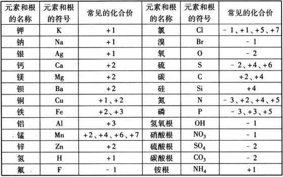 即,把化合价的数值写到对方的右下角. (3)化合价的绝对值不相等,但有公约数,先约简,后交叉. 如二氧化碳的化学式写法为: 即先约去公约数2,再交叉 一些常见元素和根的化合价