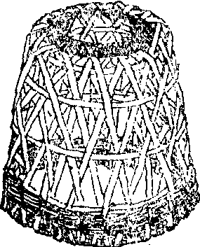 用芨芨草或竹篾等编成的圈鸡的器具,有小孔,口大底小,用时口朝下将鸡罩住。