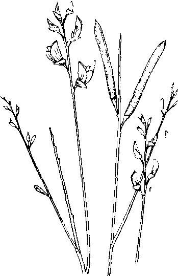鹰爪豆weaversbroomSpartium junceum L.,又称鹰爪、无叶豆、鹰爪花、莺织柳。豆科,鹰爪豆属。落叶灌木,高达3.5 m。枝细长,绿色,有纵棱。单叶,疏生,或无叶,叶倒披针形或条形,长1~2.5 cm,宽3.5~5 mm,先端钝,基部窄楔形;叶柄细,长3~4 mm。总状花序顶生;萼佛焰苞状,单唇形,具5小齿;与花冠为鲜黄色,芳香。荚果条形,长5~6 cm,宽5~6 mm,两边较厚,黑褐色、被柔毛。种子10多粒,红褐色。原产地中海地区及大洋洲加罗林群岛。陕西、河南、江苏、浙江、上海等省市有栽培。花期长,花色艳,供观赏。 |