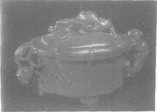 | 释义 | 古代名物 > 雕繪類 > 雕塑部 > 工藝雕塑 > 黄楊三螭海棠式盒 黄楊三螭海棠式盒 huángyángsānchīhǎitángshìhé 清代木雕作品。黄楊木質盒,形如海棠花,上有三螭,故名。高九·八厘米,口徑十至十二厘米。一螭伏蓋頂,頭似鸚鵡。左右以螭代耳,一昇一降,形態生動,全不對稱,在工藝品中殊爲罕見。北京故宫博物院藏。 黄杨三螭海棠式盒 黄杨三螭海棠式盒清。高9.8厘米,大径12厘米,小径10厘米。北京故宫博物院藏。盒呈海棠形,下设4个如意云头形足。所饰三螭引人注目:左、右螭耳,一螭后足蹬盖沿,倒吊身体,回首偷视;一螭前肢扒盖沿,后足撑盒壁,悬身空中,仰首窥探;盖钮鸟首螭斜身爬伏着,弯喙下勾,抬着头,正警觉地侧耳倾听。此盒布局紧凑,三兽形态刻画得十分生动,使得平静中寓着紧张、不安。两耳的格局,打破了传统的匀衡对称式,使盒更增加了几分生动感。
