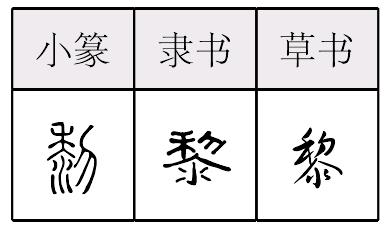 【提示】禾,中间是竖,不是竖钩; 位于字或部件左边时,末笔捺改点。下面的 是 “水” 的变形; 水和中间的人末笔原本都是捺,为避重捺,水的末笔捺改点, 且起笔㇇变成一点、一提两笔。 *黎lí15画 水部 (1) 众: ~民|~元(均指百姓)。 (2) 等到;接近: ~明。 (3) 我国少数民族名。 黎 ☚ 黍 香部 ☛ 黎lí甲骨文从刀加几点,就是“利”的本字,象农具的刀锋利形,又因土地色深、黑,有黑色义。西汉就是先用“利”后用黎的。如轪(dà或dài)侯名字《史记》作“利仓”。《汉书》作“黎朱仓”。其后子孙姓黎。小篆加水旁入旁,也可将字形结构拆合为从黍(《说文》“禾入水”)从刀(或立刀,或从“利”初文),从古文利省。《说文》即如此说。黎主要是“黑(色)”义。组词如:黎民(黑头发的民众)|黎庶(庶是多义)|黎明(天才亮时)。 黎★常◎常