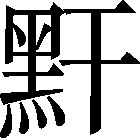 黑色。例:水将禾苗淹久了,禾秆黑靘~了,死了。《玉篇》:“,黑色。”