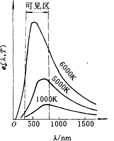 | 释义 | 黑体辐射 黑体辐射heiti fushe黑体所发出的电磁辐射。实验中可以用空腔上的小孔作为黑体模拟物来研究黑体辐射规律。加热空腔到一定温度,可以测出小孔辐射的发射本领e0(λ,T)随波长的分布曲线,改变温度,可测出不同T时的曲线。实验结果如图所示。图中显示出两个明显的规律。一是随着温度的升高,曲线很快升高。曲线下的面积等于黑体在一定温度下单位时间内、单位面积所发出的总辐射能。 即:
