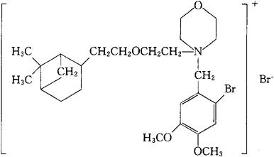C26H41Br2NO4=591.42 CAS-53251-94-8 CAS-59995-65-2(pinaverium) 4-(6-溴藜芦基)-4-[2-[2-(6,6-二甲基-2-去甲蒎基)乙氧]乙基]吗啉鎓溴化物。 4-(6-Bromoveratryl)-4-[2-[2-(6,6-dimethyl-2-norpinyl)ethoxy]ethyl]morpholinium bromide. 4-[(2-溴-4,5-二甲氧苯基)甲基]-4-[2-[2-(6,6-二甲基双环[3.1.1]庚-2-基)乙氧]乙基]吗啉鎓溴化物。 4-[(2-Bromo-4,5-dimethoxyphenyl)methyl]-4-[2-[2-(6,6-dimethylbicyclo[3.1.1]hept-2-yl)ethoxy]ethyl]morpholinium,bromide. 解痉药,局部麻醉药。 用于治疗胃肠功能紊乱。 Pinaxerium Bromide,Dicetal,Dicetel,Eldicet,L 1717,LAT 1717. INN,USAN.  |