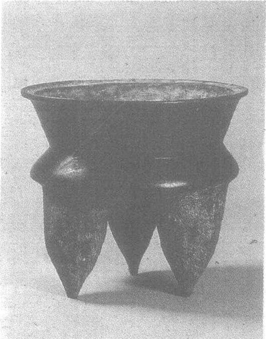 | 释义 | 黑陶斝 黑陶斝铜石并用时代龙山文化晚期。高23厘米,口径23厘米。1960年河南省洛阳市王湾出土。北京中国历史博物馆藏。斝是一种酒器,流行于龙山文化和二里头文化时期,到商代陶斝逐渐绝迹,而为铜斝所取代,两者的区别是十分显著的。此件陶斝为圆唇、敞口,腹中部内收后从而形成重腹。下部配3个袋状足,上饰细绳纹,足头较尖。除3足外,器物的外表均仔细磨光,显得细腻精致。器物整体给人以上轻下重,上简下繁的稳重感,符合审美习惯。龙山文化见“黑陶鼎”条目。