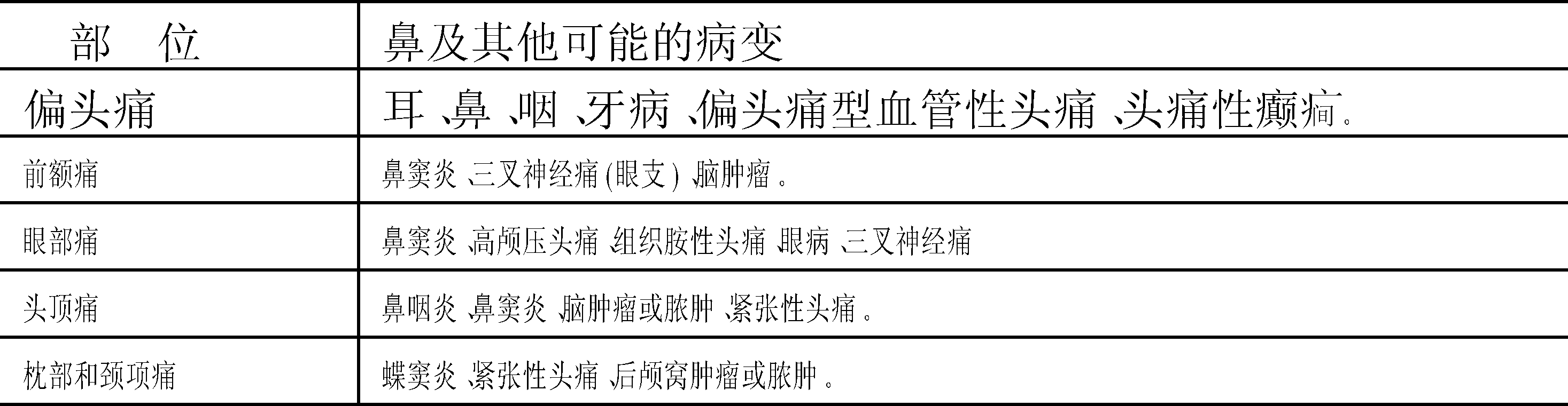 鼻源性头痛rhinogenous headache系指由鼻部及鼻旁窦疾病引起的头痛而言。可由鼻旁窦及鼻的感染性炎症,肿瘤、外伤等引起。额窦炎疼痛多位于额部,上颌窦炎疼痛位于上颌部,蝶、筛窦炎疼痛多位于鼻根部,且多伴有脓性分泌物及钝、胀痛,并随着炎症好转而减轻。由肿瘤引起者疼痛可为持续性并逐渐加重,有的伴有血性分泌物。对鼻源性疼痛应查清原因,不可忽视,并以治疗原发病为主。 鼻源性头痛rhinogenic headache系指鼻腔、鼻窦病变引起的头痛,临床较多见。其特点是均有鼻部症状,如鼻塞、流脓涕等。常在急性炎症发生时加重,多为深部头痛,呈钝痛、隐痛或反射性头痛,无波动性。以白天较重,一般在卧床或休息时逐渐减轻。头呈低位时加剧。鼻腔粘膜收缩或用表面麻醉后,头痛可以减轻。头痛有一定的部位和时间。可按病因治疗。 鼻源性头痛 鼻源性头痛鼻源性头痛系指鼻腔、鼻窦病变引起的头痛,在临床上比较多见。头面部包括鼻腔及鼻窦的感觉,主要由三叉神经支配。鼻部病变可直接刺激鼻粘膜三叉神经末梢引起疼痛,并可沿其分支反射到头部的其他部分。此外,强烈的病灶兴奋,通过中枢的扩散,还可反射到更广泛的部位,产生疼痛。 鼻部引起头痛的原因,以鼻窦急性炎症最为多见,约占全部头痛发病数的5%。其他如鼻中隔偏曲、鼻腔的急慢性炎症或肿瘤压迫神经,亦可引起。 急性鼻炎 因鼻粘膜充血肿胀,致鼻腔通气引流不畅,发生阻塞性头痛; 如鼻窦开口因粘膜肿胀而阻塞,则窦腔内空气可逐渐被吸收呈负压而发生真空性头痛; 窦内负压时间过久,粘膜血管扩张,血浆渗出,充满窦腔又不能排出时,压力增高而出现张力性头痛。 急性鼻窦炎 由于鼻窦内粘膜肿胀、积脓压迫神经或细菌毒素刺激而出现头痛。据查在窦口附近粘膜痛觉最敏感,此种头痛因病窦的位置不同而表现的头痛亦各异。 急性上颌窦炎患者疼痛位于面颊部,有时上列磨牙发胀或麻木感,上午较轻,午后加重,疼痛并反射至牙槽突、牙龈及眶下神经分布区,亦可发生额部反射性头痛。 急性额窦炎患者疼痛呈周期性,晨起2~3小时后开始,逐渐加重,疼痛位于前额部,眼眶内角或全头痛,至中午达到高峰,头痛十分剧烈,下午二、三点钟后逐渐减轻,晚间头痛可完全消失,第2天再同样发作。此种头痛与额窦的鼻额管位置有关,主要因坐立体位脓液堵塞居下的窦口,发生真空性头痛,待脓液排出空气进入窦腔后疼痛即缓解。 急性筛窦炎患者,常在眼内眦及鼻根深部感疼痛或胀痛,有时在眶内上角,眼球活动时疼痛加剧,手指压迫眼球感球后痛,疼痛可反射至颞部或头顶部。 急性蝶窦炎患者头痛多位于头颅深处,头顶中央,颞部或枕部,有时感觉眼球后疼痛,但无眼球压痛。蝶窦炎常有广泛的反射性疼痛,如反射到乳突部、肩部及背部,有时伴有恶心和眩晕感。 慢性鼻窦炎 由于窦腔积脓,细菌毒素刺激可发生头痛,一般头痛不严重,在额部或鼻根部发胀或钝痛,有时位于头顶、颞部和枕部。 萎缩性鼻炎 由于鼻腔过大,大量空气直接刺激粘膜引起反射性头痛,患者感额部、头顶部空痛,并有头昏、耳鸣。此外,鼻腔内脓痂阻塞时,亦可直接引起头痛。 其他 鼻中隔偏曲、鼻中隔粘膜肥厚、鼻甲肥厚、肿瘤、异物或鼻腔填塞等阻塞鼻腔,影响呼吸和引流,出现阻塞性头痛; 中隔高位偏曲可引起鼻睫状神经痛,鼻中隔嵴突或矩状突压迫鼻甲粘膜可发生较严重的反射性头痛。 鼻源性头痛的特点: 一般都有鼻病症状,如鼻塞、流脓涕等; 多在鼻急性炎症发生时加重;多为深部头痛,呈钝痛和隐痛,无搏动性; 头痛以白天较重,一般在卧床或休息时逐渐减轻; 摇动头部或低头弯腰,衣领过紧、全身用劲致静脉压增高时鼻粘膜肿胀,头痛加重; 鼻腔粘膜收缩或用表面麻醉后,头痛可以减轻; 头痛有一定部位和时间。 鼻源性头痛应按病因治疗。止痛药物,如阿斯匹林类、耳针、体针或腕踝针对制止鼻源性头痛亦有一定功效。 ☚ 鼻音 鼻源性突眼 ☛ 鼻源性头痛 鼻源性头痛rhinogenic headache指鼻腔、鼻窦病变引起的头痛,临床较多见。其特点是均有鼻部症状,如鼻塞、流脓涕等。常在急性炎症发生时加重,多为深部头痛,呈钝痛、隐痛或反射性头痛,无波动性。以白天较重,一般在卧床或休息时逐渐减轻。头呈低位时加剧。鼻腔黏膜收缩或用表面麻醉后,头痛可以减轻。头痛部位与鼻及其他有关病变见下表: 头痛部位与鼻及其他可能的病变