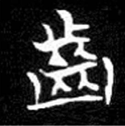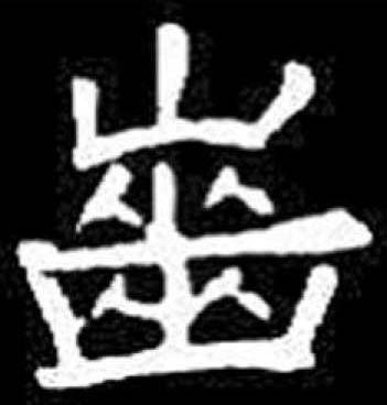 齒齒,甲骨文作   ,金文作  (摹本),《説文》古文作 ,小篆作 。 字形演變顯示,甲骨文字形有簡有繁,最簡者僅存大意。金文第一字形是商代字形,象形。第二、三字形是戰國晚期字形,增“之”或“止”作聲符,後世統一以 “止”作聲符。小篆繼承第三字形,後世沿用,隸定作 “齒”。形聲爲求與語言密合,訛變則多緣於書寫求便,轉而又借用字形相近的字作聲符,這種構形的變化顯示了聲化的自覺。齒、牙渾言無别,析言之,則齒指門齒,牙指臼齒。文獻或用其引申義,如年齡、類别、并列、口頭提及等義。卜辭多用本義,或用作地名。銘文或用作氏族名、地名。 楚簡帛文作 ,沿襲金文第二字形。秦簡牘文作 ,古隸典型。 齒齒, 甲骨文; 金文; 篆chǐ[止聲,象形,像口中牙齒形。(《説文》:“口齗骨也。象口齒之形,止聲。”齒,人和動物嘴裏咀嚼食物的器官〈牙齒〉。排列像牙齒形狀的東西〈齒輪。年齡。馬齒徒增〉。並列〈不齒〉。談到,提及〈齒及〉。)] 《詩經·鄘風·相鼠》:“相鼠有齒,人而無止。”(老鼠尚有牙齒,人却不重舉止。) [春秋] 左丘明《左傳·哀公八年》:“夫魯,齊、晉之唇。唇亡齒寒,君所知也,不救何爲?”(魯國,是齊國和晉國護齒的嘴唇。唇亡齒寒,是你所知道的,爲什麼不去救助他們?) 《孟子·公孫丑下》:“鄉党莫如齒,輔世長民莫如德。”(鄉里最尊重的是年長人,幫助老百姓,最好的莫過於提高他們的道德素養。) 齒(chǐ)“ ,口齗骨也。象口齒之形,止声。凡齒之属皆从齒。 ,古文齒字。”(昌里切) 段玉裁注:“郑注《周礼》曰:‘人生齒而体备。男八月、女七月而生齒。’…… 者象齒,余口字也。” 甲骨文或作 、 ,金文或作 ,均象口中有牙齒之形。卜辞或用其本义,如:“妇好弗疾齒。”(《乙》3164)[1]意思是妇好牙齒没有毛病。战国时,中山王方壶有 ,仰天湖楚简作 ,下象口中有齒形,上面“止”表读音,是后起形声字。甲骨卜辞中,“齒”既可以指人的牙齒,也可以指牛的年齒,另外还有差错、灾害义,如:“吉,亡来齒。”这是由齒牙相切错而引申之义。 《说文》解释“口齗骨”,“齗”与“齦”为异体关系,意思是牙根肉,所谓“齒本肉也”。由于牙齒是整齐地排列在口中,所以“齒”引申为并列或排列。《左传·隐公十一年》:“寡人若朝于薛,不敢与诸任齒。” 齒部有属字四十三个。这些字大多与牙齒有关,如“齦、齡”等。《说文》后的字典、词典大都立“齒”部。 齒 ☚ 齒部 齔 ☛ 齒 (chǐ) 象齒形,从口犯切之“凵”者,口張齒乃見也。“一”爲上下齒中間之虚縫。从止聲。古文 則从凵,象齒形。