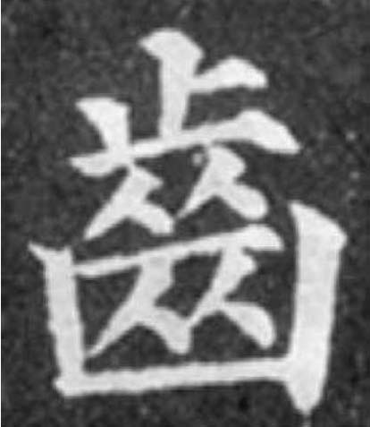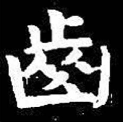 古代名物 > 人體類 > 頭面部 > 口 > 齒 齒 chǐ 亦稱“玉𥫽”。指前齒,亦通指牙齒。其稱始見於先秦典籍。《周禮·秋官·小司寇》:“自生齒以上,登於天府。”《黄庭内景經·玄元章》:“玉𥫽金籥常完堅,閉口屈舌食胎津。”《黄庭外景經·中部經》:“玉𥫽金籥身完堅。”務成子注:“玉𥫽,齒;金籥,舌。”𥫽同匙。元·張國賓《合汗衫》第二折:“你休聽那厮説短論長,那般的俐齒伶牙。” 齒chiFD58 “齿”的繁体。 齒chǐC144 “齿”的繁体。 〖齒〗 粵 ci2〔此〕普 chǐ ❶ 本指門牙,後泛指牙齒。司馬遷《史記.晉世家》:「虞之與虢,脣之與〜,脣亡則齒寒。」(虞、虢【粵 gwik1〔瓜色切〕普 guó】:周代諸侯國名稱。) ❷ 年齡,歲數。班固《漢書.趙充國辛慶忌傳》:「犬馬之〜七十六。」(犬馬:臣子對君上的卑稱。) ❸ 齒狀物件。沈約《宋書.列傳第二十七.謝靈運》:「登躡常着木履,上山則去前〜,下山去其後〜。」(躡【粵 nip6〔捏〕普 niè】:登上。) ❹ 言論。柳宗元《答韋中立論師道書》:「平居,望外遭〜舌不少。」(平時意外地遭受到不少是非口舌。) ❺ 提及。韓愈《師說》:「巫、醫、樂、師、百工之人,君子不〜。」 ❻ 像牙齒一樣並列。莊周《莊子.天下》:「百官以此相〜。」