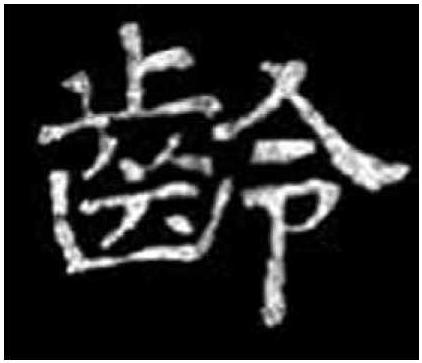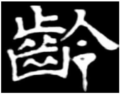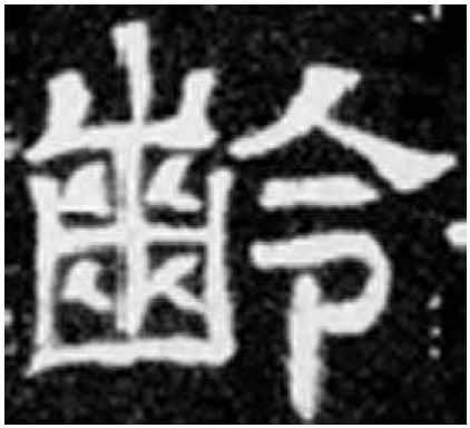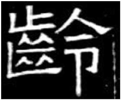 [齒(意符)+令(聲符)→齡(《説文》新附:“齡,年也。從齒,令聲。”齒(牙,意符)+令(聲符)→齡(齡,年齡。哺乳動物的牙齒有乳齒和恒齒之分,乳齒會隨年齡增長而更換。特别是馬的門齒能繼續生長。隨磨隨長,不斷平衡。在其咀嚼面有下凹的“齒坎”,和長癒合了的齒髓腔的遺迹“齒星”,它們在咀嚼面構成一定的“齒圖”。這種齒圖隨年齡增長而變化,可以作爲馬齡鑒定的主要依據。所謂“馬齒徒增”用來暗喻人的“虛度年華”。)][清] 孫枝蔚《衛武公規箴圖》:“古來富貴場,齡齒罕與齊。大德者必壽,斯言不我欺。”