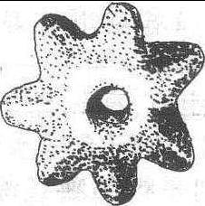 | 释义 | 齿轮状石器兵器或礼器。1963年采集于黑龙江省宁安县镜泊湖莺歌岭附近早期铁器时代遗址,现藏黑龙江省博物馆。玄武岩质,通体磨制,环形,外侧为多齿状;直径9厘米,厚6厘米。黑龙江地区辽、金时期遗址,墓葬发现的金属制成的骨朵,其祖型应是这类石器。