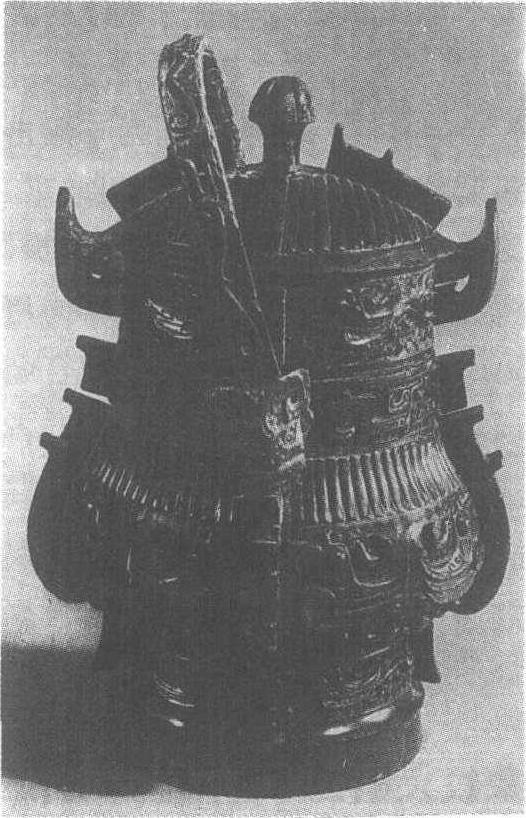 商。盛酒器。通高37.7厘米。1970年湖南省宁乡县黄材王家坟山出土。湖南省博物馆藏。卣敛口,直唇,鼓腹,圈足。提梁两端各有一兽首形耳。盖和器均有四道扉棱,纹饰精细。通体均饰以云雷纹为地的短尾凤鸟纹和夔龙纹。提梁上亦饰夔龙纹。盖内和器内底均有铭文“戈”字。“戈”是中原晚商青铜器中常见的族徽。此器造型庄重,纹饰精丽,是商代晚期青铜器中的精品之一。出土时,卣内盛玉虎、玉玦、玉管等320余件。