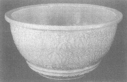 | 释义 | 龙泉窑青釉凸花莲座瓷花盆 龙泉窑青釉凸花莲座瓷花盆明。通高24.6厘米,口径45.3厘米。北京中国历史博物馆藏。敞口,平唇,平沿,弧壁下敛,矮圈足为莲花形。盆内中心有一渗水孔。盆外表遍刻凸起的缠枝牡丹花纹,姿态秀美生动,富立体感。浅翠青釉,平滑光润,晶莹剔透,有玻璃光泽。龙泉窑见“大窑龙泉窑遗址”条目。