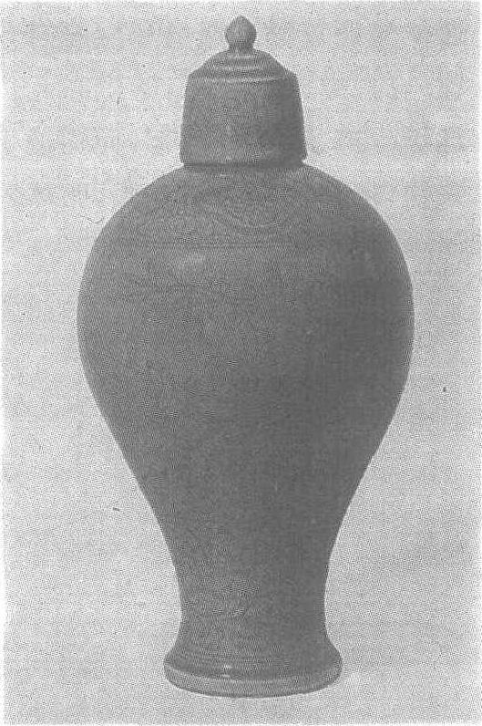 元。高44.9厘米,口径6厘米。北京故宫博物院藏。此瓶溜肩,鼓腹,腹中部开始向下内收,足微外撇。瓶带盖,盖上有花苞形钮。通身刻有纹饰:瓶盖四周刻有花卉;瓶肩为如意云头纹;腹部刻饰松竹梅;胫部为莲荷纹。每组纹饰以弦纹相隔。通体施青绿釉,色似潭中春水,釉面莹亮,具有玻璃质感。纹饰的积釉处釉色较深,增添了纹饰的美感。此种瓶式在元代钧窑器中亦有所见。龙泉窑见“龙泉窑粉青釉缠枝牡丹纹瓷瓶”条目。