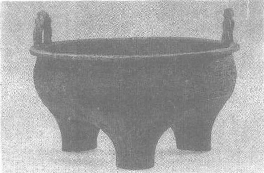 | 释义 | 龙纹铜鬲式炉 龙纹铜鬲式炉元。通高19.5厘米,口径26.5厘米。1981年北京市延庆县出土。北京市文物工作队藏。此炉扁圆体,平沿、束颈,腹微鼓,三粗短袋形足,口沿两侧立绳形双耳。腹部上下饰两道弦纹,弦纹间饰三组龙纹,每组以竖道弦纹为界。