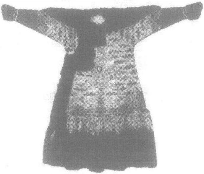 | 释义 | 龙袍 龙袍以龙纹为饰的袍服。中国古代为皇帝所专用。龙是中国古代传说中的一种神异动物,能兴风雨、利万物、善变化。《易·乾》曰: “飞龙在天,大人造也。”疏: “飞龙在天,犹圣人之在王位。”故后常以龙视作皇帝的化身。龙纹,早在周代就已定为绣绘于冕服的十二章纹之一,但最初它的形象仅是一种无爪无麟,似蛇非蛇的爬虫类动物图腾,在十二章纹中的绣纹的地位也不十分显要(较显要的是日、月、星辰,取其“临照”之意,所谓“天子肩担日月,背负七星”,一般绣绘于肩膀等重要部位),但衮龙服以绣龙为主。唐宋后,龙纹在帝王服装中的地位渐显重要,明代且出现了绣龙袍服(原龙纹绣于上衣下裳制的冕服)。《明史·舆服志》: “皇帝常服,……(永乐三年更定)翼善冠;袍黄、盘领、窄袖,前后及两肩各织金盘龙一,带用玉,靴以皮。”并严令“官吏衣服帐慢,不许用元、黄、紫三色并织绣龙凤文。违者罪及染造之人。”龙纹的形象也得到了充实完善,采用牛头、蛇身、鹿角、虾眼、狮鼻、驴嘴、猫耳、鹰爪、鱼鳞等等,集中了多种动物的局部特征,且根据龙的各种姿态,而设计有团龙、正龙、坐龙、升龙、降龙等不同的图案纹样。《金瓶梅》第五十五回,西门庆欲往东京替蔡京庆寿,其箱笼驮担“装了蟒衣、龙袍、段匹、上寿等物共有二十多扛”,这龙袍假如是献给蔡京穿用,显然是犯禁的。似乎作者是用小说之笔,夸张其事。 ☚ 四角方巾 火浣布 ☛ 〗。![]() ![]() 古代名物 > 冠服類 > 身服部 > 衣衫袍襖 > 龍袍 龍袍 lóngpáo 古時皇帝所著禮服,上繡有龍形。始於先秦,後代相沿不絶。《周禮·春官·司服》:“王之吉服……享先王則衮冕。”鄭玄注:“衮,卷龍衣也。”卷龍衣即後世所謂龍袍。元·陳孚《八月朝回》詩:“風清雙雉扇,天近五龍袍。”《元史·速哥傳》:“速哥奏事,朝至朝入奏,夕至夕入奏,文宗嘗出金盤龍袍及宫女贈之。”《清通志·器服略》:“皇帝龍袍,色明黄,領袖俱石青片金緣,繡文金龍九,列十二章,間以五色雲,領前後正龍各一,左右及交襟處行龍各一,袖端正龍各一。” 朝服 朝服袍 具服 ☚ 礼服 丧服 ☛ 龙袍lóngpáo❶绣有龙形图纹的袍服。除帝、后、皇子外,其他官员不得穿着,若得皇帝亲赐,须在穿前挑去一爪,以示区别。经过改制后的“龙袍”,则称蟒袍。衣上绣龙,始于先秦,后代相沿不绝。龙袍的纹饰有几种:胸前绣有“坐龙”的纹饰,取其“坐镇江山”之意。龙爪要五爪分开,以显示龙的威慑力;绣以“升降龙”的纹饰,取其变化卷舒,具有德性之意;还有的以团龙为纹饰。隋文帝以来,黄色袍服成为帝王的御用服装,绣有龙形纹饰的黄袍就更为后代皇帝所独占,纹样也越来越复杂。明代的龙袍是皇帝的常服,样式为大襟、盘领、窄袖的黄色长袍。前、后及两肩各织金盘龙一条。太子的龙袍绣龙纹样与皇帝相同,但袍为红色。清代龙袍属于吉服。平时较多穿著。按清朝礼仪,穿龙袍,必须戴吉服冠,束吉服带,项间挂朝珠。龙袍样式为大襟、圆领、带箭袖、四开衩的长袍。颜色多为明黄,也可用金黄或杏黄,领及袖为石青色。一般都与衮服配起来穿,以示庄重。清代龙袍共绣金龙九条,胸背各绣金龙一条,左右肩各绣金龙一条,袍下端左右交襟处前后各绣金龙一条。第九条金龙绣在衣襟里面。不论从正面或背面看,所见金龙都是五条(两肩之龙前后都能看到),象征着帝王的九五之尊。另外,领前、领后各绣小金龙一条,两袖端各绣小金龙一条。金龙之间绣以十二章纹饰和五色云,下幅绣八宝立水图案,以海水江涯来喻意皇帝拥有着万世升平的一统河山。清代后妃也穿龙袍,式样与皇帝龙袍相同,只是袍为左右两开禊。皇太后、皇后、皇贵妃龙袍为明黄色,贵妃、妃龙袍为金黄色,嫔龙袍为香色。皇后龙袍有三种纹饰:一种绣金龙九条,间以五色云及福、寿文采,下幅八宝立水;一种绣五爪金龙八团,两肩前后飞龙各一,襟行龙四,下幅八宝立水;另一种下幅不加纹饰。《宣和遗事·亨集》:“徽宗闻言大喜,即时易了衣服,将龙袍卸却,把一领皂褙穿者。”元白仁甫《梧桐雨》第一折:“一襟爽气酒初醒,松开了龙袍罗扣。”陈孚《八月呈学士阎静斋赵方塘》诗之一:“风清双雉扇,天近五龙袍。”《元史·速哥传》:“速哥奏事,朝至朝入奏,夕至夕入奏,文宗尝出金盘龙袍及宫女赠之。”《水浒传》第二回:“高俅看时,见端王头戴软纱唐巾,身穿紫绣龙袍。”宋应星《天工开物》卷二:“凡上供龙袍,我朝局在苏杭,其花楼高一丈五尺,能手两人,扳提花木,织过数寸,即换龙形。”《英烈传》卷二六:“今士诚已僭称吴王,陛下可赐以龙袍、玉带、玉印,敕为吴王。”《清史稿·舆服志二》:“(皇帝)龙袍,色用明黄。领、袖俱石青,片金缘。绣文金龙九。列十二章,间以五色云。领前后正龙各一,左、右及交襟处行龙各一,袖端正龙各一。下幅八宝立水,襟左右开,棉、袷、纱、裘,各惟其时。” 龙袍清代皇帝、后妃及皇太子专用服饰。多在喜庆场合穿着,可单穿,亦可与礼服相配穿。从袍色及纹饰辨等级。为大襟长袍,熨褶素接袖 (满语称“赫特赫”),袖端作马蹄式,有明黄、金黄及香色,领及袖俱石青片金缘,袍身彩绣龙纹并加饰不同纹样图案,棉、夹、纱、裘各唯其时。