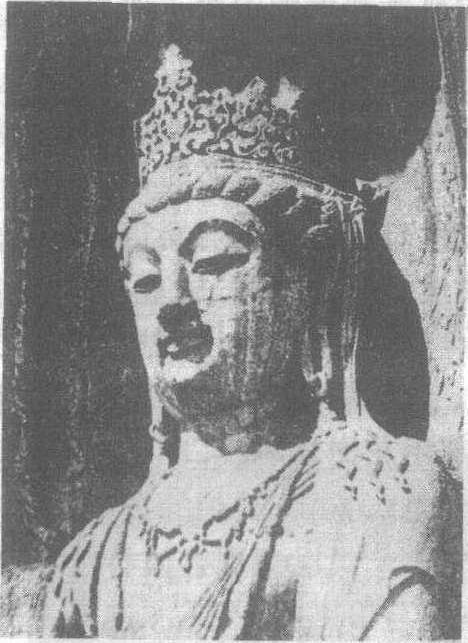 ❸唐代的造像题材,反映出宗教信仰的明显变化,阿弥陀佛显著增多,反映出当时对于西方阿弥陀净土和面奉弥勒的渴求心理。这时期的造像在艺术上达到一个新的境界。佛、菩萨、天王、力士的造型均趋于圆浑劲健,又各具特点。佛的崇高、弟子的温顺、天王的威武、菩萨的端丽,都塑造得很有个性。龙门石窟在宋以后仍有小规模的雕刻造像活动,但至元、明、清以后日趋衰落。