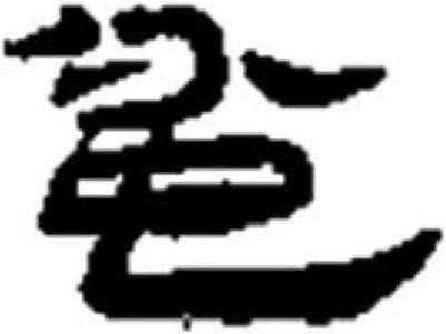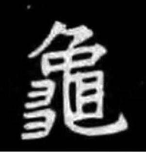 | 释义 | 龜guī❶烏龜,爬行動物。背腹皆有硬甲,頭尾和四肢通常能縮人甲內。古人以龜爲靈物,司馬相如《子虛賦》:“其中則有神龜蛟鼉瑇瑁鼈黿。” 龜“龟”的繁体字。 上一条: 龟 下一条: 巂 龜“龟”的繁体字。 上一条: 龟 下一条: 桾 龜“龟”的繁体字。 上一条: 龟 下一条: 求 〗。 〗。 〗。 〗。 〗。 〗。 〗。 〗。![]() ![]() 龜龟(2次) 古代名物 > 天象類 > 天體部 > 二十八宿 > 玄武 > 龜 龜 guī 即玄武。 古代名物 > 獸畜類 > 其他部 > 部器 > 龜 龜 guī 謂獸屬背脊隆起處。《左傳·宣公十二年》:“麋興於前,射麋麗龜。”杜預注:“麗,著也。龜,背之隆高當心。”孔穎達疏:“龜之形背高而前後下,此射麋麗龜,謂著其高處。” 古代名物 > 朝制類 > 印綬符節部 > 符 > 龜2 龜2 guī 龜符。唐武后時賜五品上朝官所佩之符信。唐初本有隨身魚符,武后惡“魚”近“鯉”(李),故改佩龜。龜即玄武,與武則天姓同。中宗即位,遂罷之。《唐會要·輿服上》:“天授元年九月二十六日,改内外官所佩魚爲龜。”又,亦爲“龜袋”之省稱,見本類該條。 古代名物 > 水族類 > 爬行部 > 龜 > 龜 > 龜 龜 guī 同“龜”。 古代名物 > 天象類 > 天體部 > 二十八宿 > 龜 龜 guī 亦稱“天龜”。星宿名。共五星,屬尾宿。《晉書·天文志中》:“龜五星,在尾南,主卜以占吉凶。”《清會典圖·天文·恒星》:“龜五星。”一説有六星。《星經》卷下:“天龜六星,在尾南漢中,主卜吉凶。” 古代名物 > 水族類 > 爬行部 > 龜 > 龜 龜 guī 亦作“龜”,亦稱“元衣督郵”。爬行類動物。腹背皆有硬甲,背甲褐色或暗褐色,頭、尾與四肢能縮入甲内,動作缓慢,耐飢渴,壽可至百歲以上。或棲於山地,或生於河沼。陸生龜甲較爲隆起,多爲草食性;水生者,爲肉食性。肉可食,甲可入藥。其稱始見於先秦典籍,沿用至今。《禮記·禮運》:“麟、鳳、龜、龍,謂之四靈。”晉·左思《吳都赋》:“王鮪鯸鮐,鮣龜鱕䱜。”晉·崔豹《古今注·别名》:“龜名元衣督郵。”唐·杜甫《屏跡三首》之三:“烏下竹根行,龜開萍葉過。”宋·陸游《自笑》詩:“那知病葉先摧落,却羡寒龜巧宿藏。” 龜FD94 龜qiū,guīQ141 龜guī,qiūG138 〖龜〗 (一)粵 gwai1〔閨〕普 ɡuī ❶ 烏龜。范曄《後漢書.張衡列傳》:「飾以篆文山〜鳥獸之形。」❷ 占卜用的龜甲。劉安《淮南子.時則訓》:「占〜策。」 ❸ 用作貨幣的龜甲。班固《漢書.敍傳》:「貨自〜貝,至此五銖。」(貨:貨幣。貝:用貝殻做的貨幣。五銖:指西漢貨幣「五銖錢」。) (二)粵 gwan1〔君〕普 jūn 通「皸」,皮膚因寒冷或乾燥而爆裂。莊周《莊子.逍遙遊》:「宋人有善為不〜手之藥者。」(三)粵 gau1〔鳩〕/ kau1〔溝〕普 qiū 〜茲【粵 ci4〔詞〕普 cí】:漢代西域國名,在今新疆庫車縣。龜(ɡuī)“ 龜 龜( |