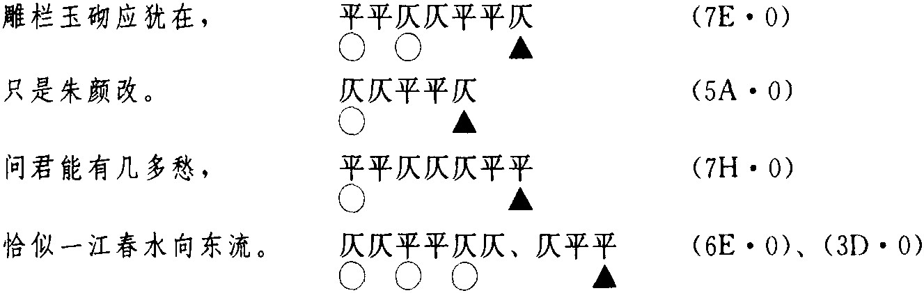 这是一首多次换韵的词。首先用了两个仄声韵: 了 读音l·iao (ˇ)。卢鸟切,上,筱韵。为iao韵目,属ao—iao韵部。 少 读音sh·ao (ˇ)。书沼切,上,小韵。为ao韵目,属ao—iao韵部。 在今韵方面,押ao—iao韵部(第510韵部)。 在古韵方面,押筱韵(上声29),小韵(上声30)。此二韵相邻且通押。而后,换用两个平声韵: 风 读音f·eng (-)。方戎切,平,东韵。为eng韵目,属eng—ong—iong—ueng韵部。 中 读音zh·ong (-)。陟弓切,平,东韵。为ong韵目,属eng—ong—iong—ueng韵部。 在今韵方面,押eng—ong—iong—ueng韵部(第420韵部)。 在古韵方面,押东韵(上平01)。然后,再换用两个仄声韵: 在 读音z ·ai (ˋ)。昨代切,去,代韵。为ai韵目,属ai—uai韵部。 改 读音g ·ai (ˇ)。古亥切,上,海韵。为ai韵目,属ai—uai韵部。 在今韵方面,押ai韵目(第931韵目)。 在古韵方面,押海韵(上声15)、代韵(去声19)。 最后,再换用两个平声韵: 愁 读音ch·ou (ˊ)。士尤切,平,尤韵。为ou韵目,属ou—iu韵部。 流 读音l ·iu (ˊ)。力求切,平,尤韵。为iu韵目,属ou—iu韵部。 在今韵方面,押ou—iu韵部(第620韵部)。 在古韵方面,押尤韵(下平18)。 ☚ (23)晏几道《鹧鸪天·彩袖殷勤捧玉钟》 (25)冯延巳《南乡子·细雨湿流光》 ☛ |