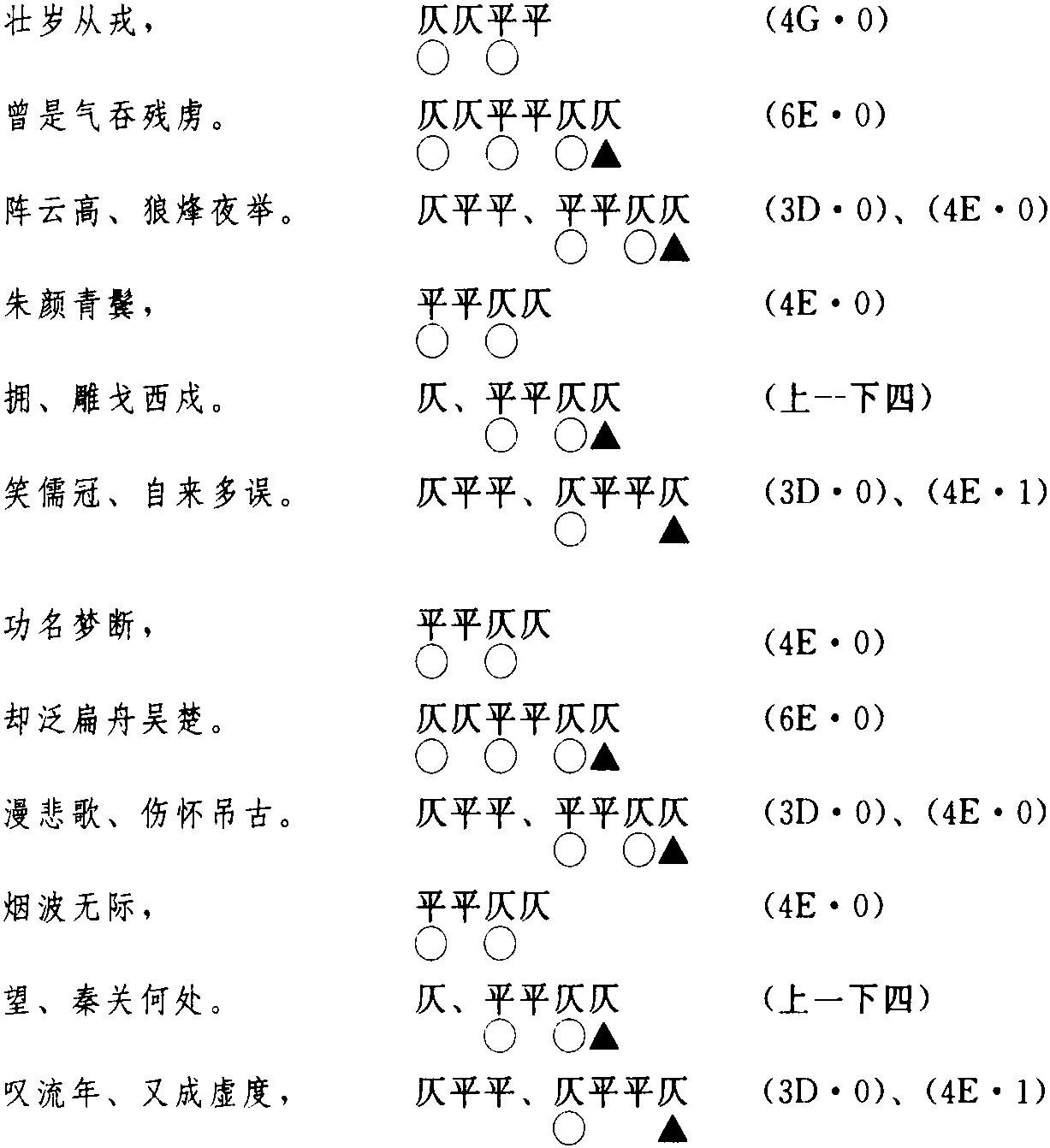 这首词,共押八个仄声韵,详况如下: 虏 读音l·u (ˇ)。郎古切,上,姥韵。为u韵目,属u—ü韵部。 举 读音j·ü(ˇ)。居许切,上,语韵。为ü韵目,属u—ü韵部。 戍 读音sh·u (ˋ)。伤遇切,去,遇韵。为u韵目,属u—ü韵部。 误 读音·u (ˋ)。五故切,去,暮韵。为u韵目,属u—ü韵部。 楚 读音ch·u(ˇ)。创举切,上,语韵。为u韵目,属u—ü韵部。 古 读音g ·u (ˇ)。公户切,上,姥韵。为u韵目,属u—ü韵部。 处 读音ch·u (ˋ)。昌据切,去,御韵。为u韵目,属u—ü韵部。 度 读音d ·u (ˋ)。徒故切,去,暮语。为u韵目,属u—ü韵部。 在今韵方面,以上八个韵字,所押的韵是u—ü韵部(第610韵部)。 在古韵方面,押语韵(上声08)、姥韵(上声10)、御韵(去声09)、遇韵(去声10)、暮韵(去声11)。 ☚ (31)苏辙《渔家傲·七十余年真一梦》 (33)苏轼《江城子·老夫聊发少年狂》 ☛ |